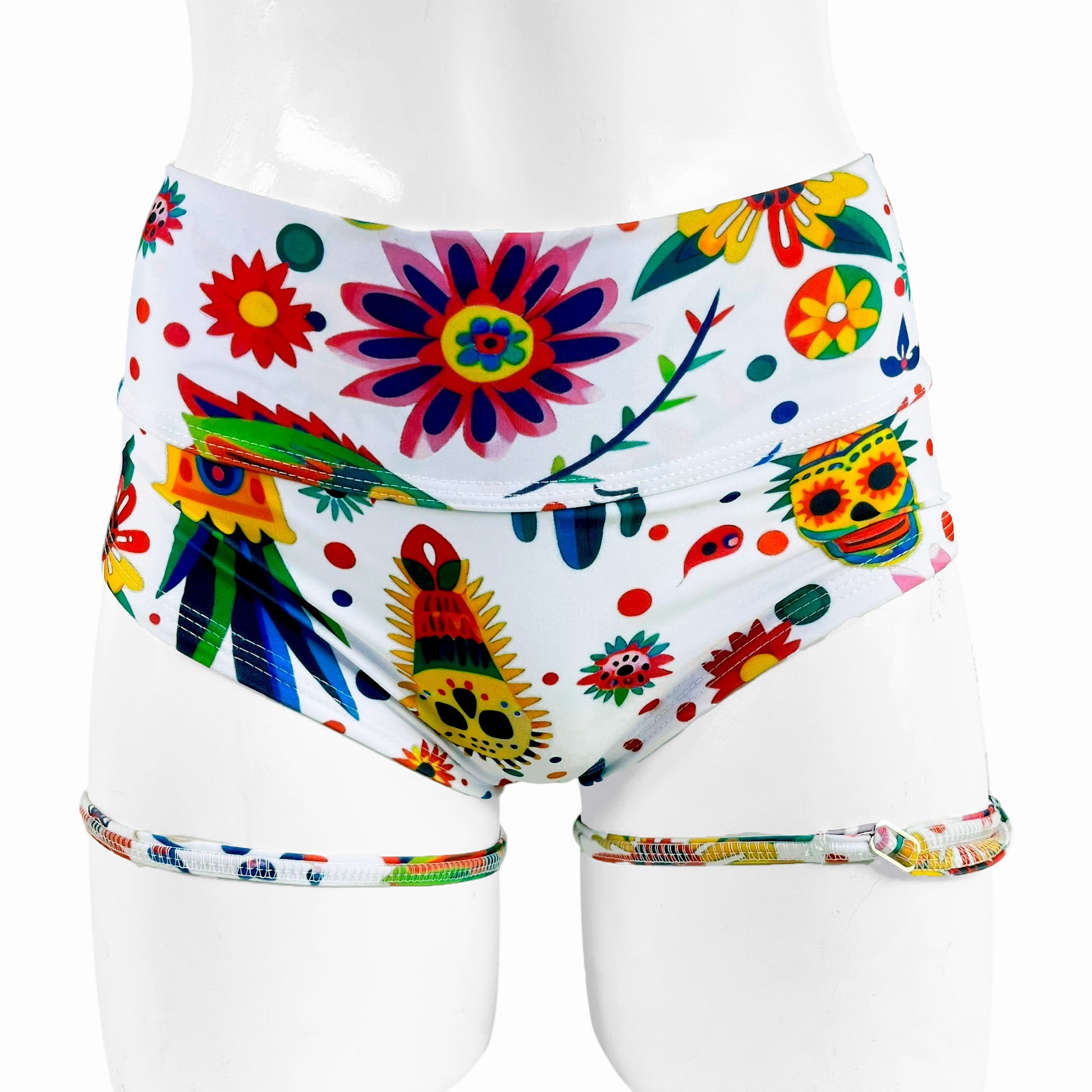 Color: Estampado detalles mexicanos y calaveras de colores sobre blanco
