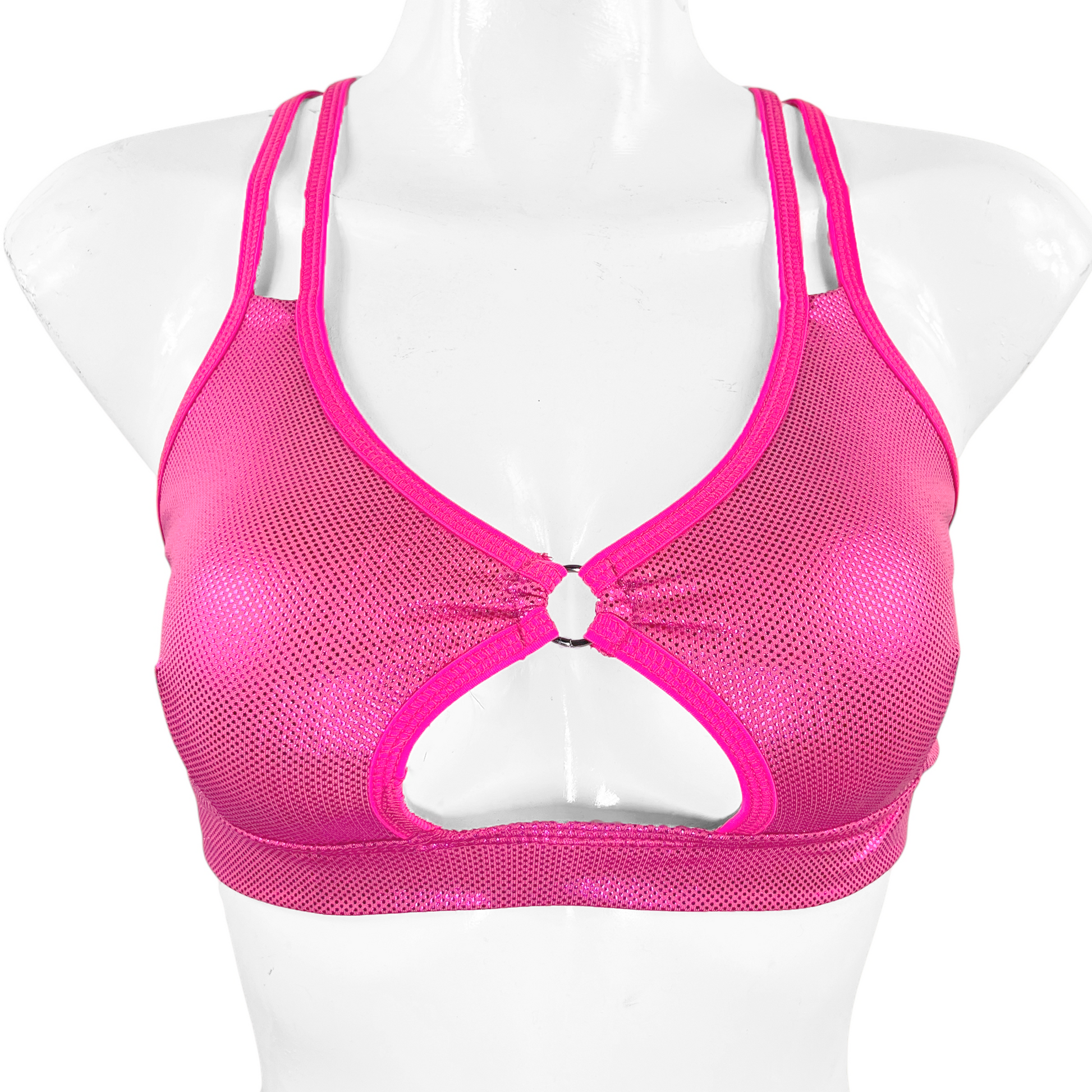 Top estilo básico de buen soporte, espalda y escote redondo y un detalle al frente de torcido que hace una abertura al centro para darle un toque original y sexy