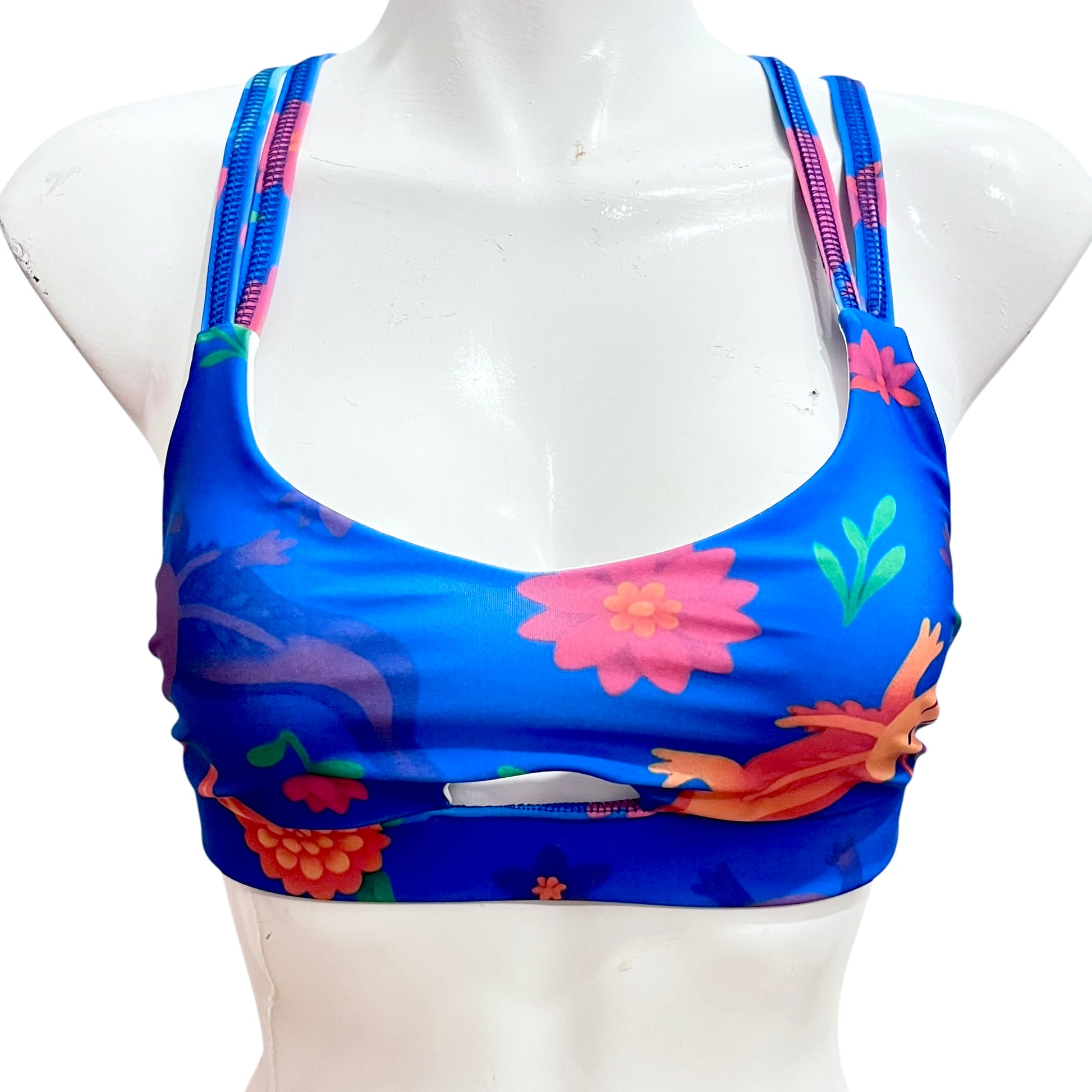 Top de doble tirante cruzado por la espalda, escote en "V", con detalle de media luna abierta al frente, estilo sutil y femenino con un toque sexy
