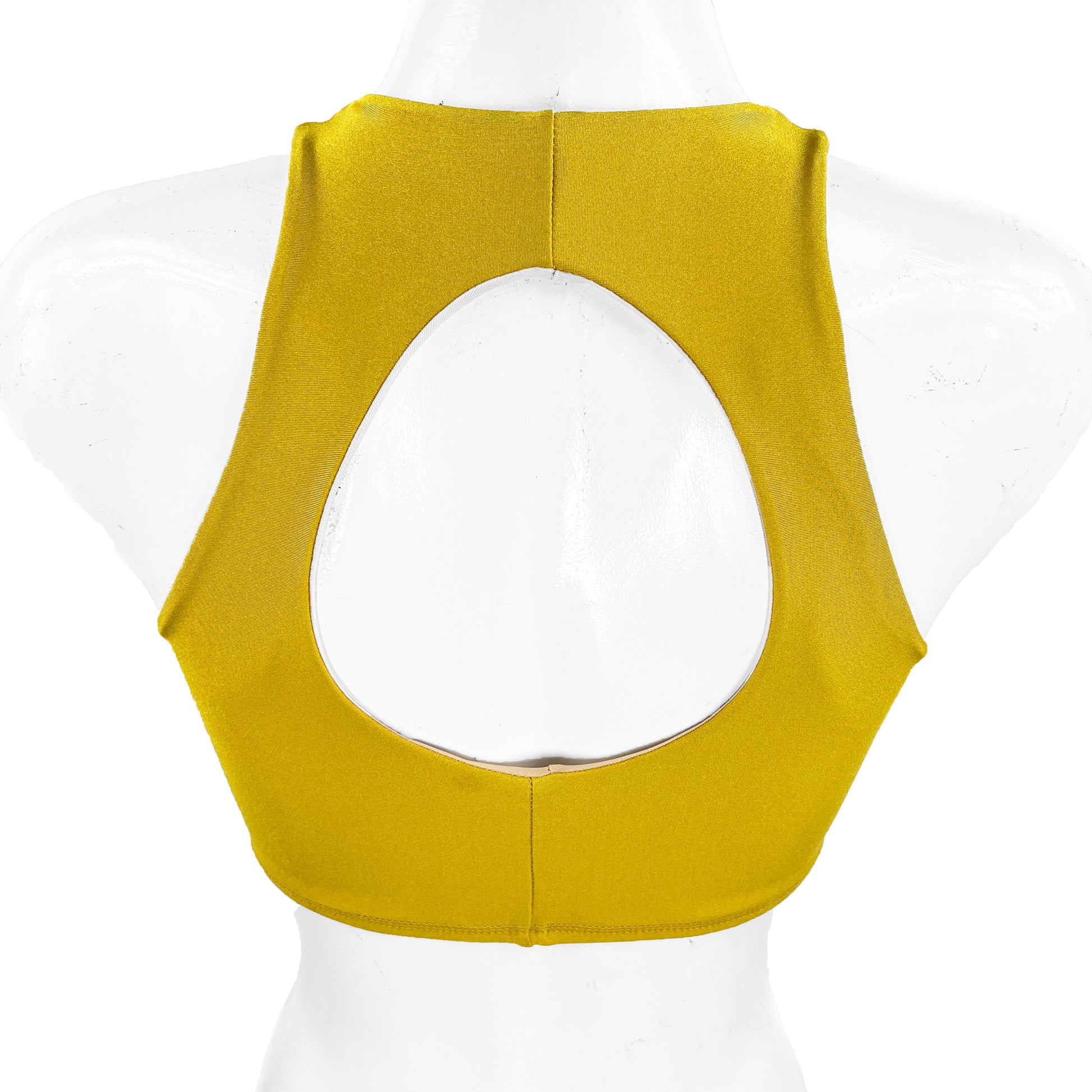 Top estilo surfista pecho completo pero sisa (manga) escotada para un toque sexy, detalle de espalda abierta en ovoide.